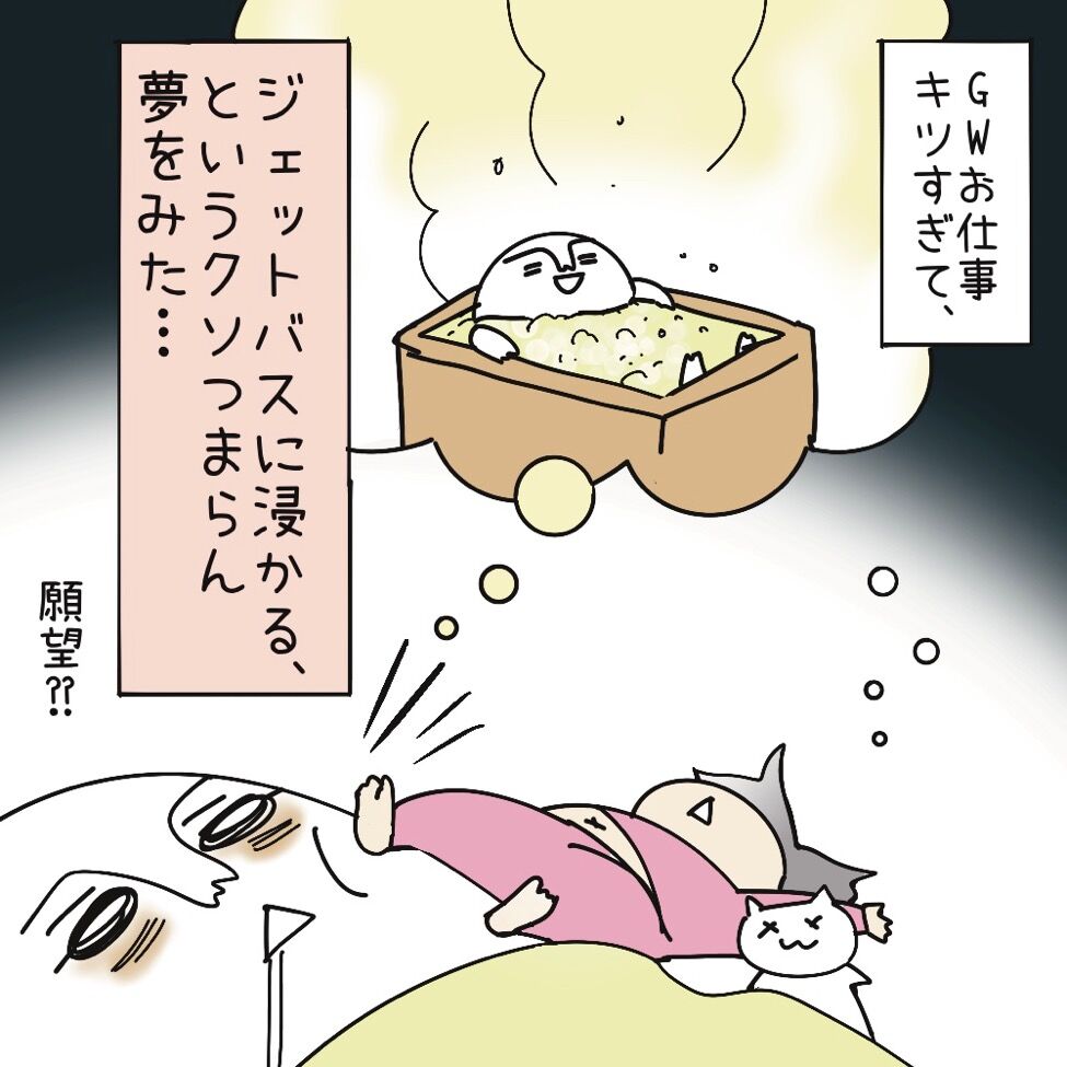 2024年05月04日 夢?願望?? 全然夢っぽくなかったので…妄想?我ながらなんて可哀想な夢なんだ我が家は大体GWから繁忙期ジェットバス浸かりたいです、、↓ブログ更新の通知を受け取るランキング参加してますほっぺをつんつんしてあげると喜びます(親が)